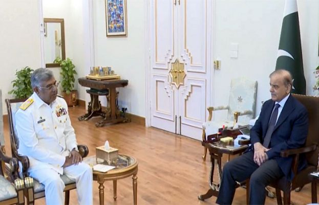 Prime Minister Shehbaz Sharif has commended the pivotal role of the Pakistan Navy in safeguarding the country’s maritime boundaries and maintaining naval balance in the region. He made these remarks during a meeting with Chief of Naval Staff Admiral Naveed Ashraf in Islamabad on Tuesday. The Prime Minister also praised the Pakistan Navy’s contributions in defending the homeland during the Marka-e- Haq. The meeting included an exchange of views on professional matters pertaining to the Pakistan Navy.