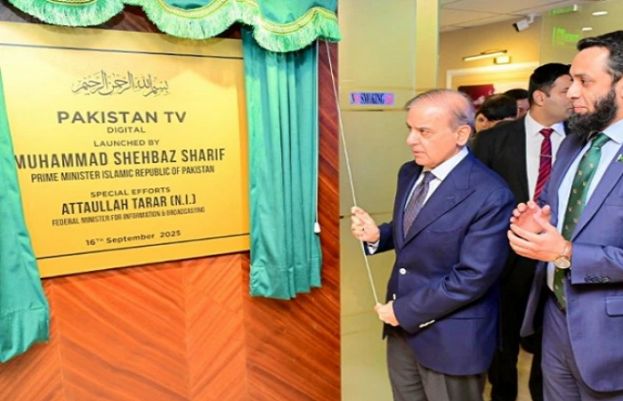 Prime Minister Shehbaz Sharif on Wednesday inaugurated Pakistan TV Digital and unveiled the plaque for its newly established English-language channel, designed to project Pakistan’s narrative to the global audience. Federal Information Minister Attaullah Tarar, Information Secretary Ambreen Jan, and other senior officials attended the ceremony. The Prime Minister toured various sections of the channel and held an interactive session with young professionals, praising their dedication and emphasizing their crucial role in countering hostile narratives about Pakistan. During the launch, PM Shehbaz also recorded his first interview for Pakistan TV Digital, highlighting the platform’s mission to deliver authentic news and counter misinformation. Minister Tarar briefed the Prime Minister on the channel’s objectives, noting that it would serve as a credible Pakistani voice internationally, bridge information gaps, and support public diplomacy efforts. The platform will focus on international affairs, cultural insights, economic developments, and analyses from a uniquely Pakistani perspective. Its operations combine in-house reporting with a global network of freelancers, along with partnerships with Reuters and Associated Press (AP), ensuring real-time, verified, and high-quality coverage. Officials said the initiative is strategically designed to neutralize biased regional media narratives, particularly those influenced by Western and Indian outlets. “Pakistan TV Digital will be the hub of major stories as seen through Pakistan’s lens,” Minister Tarar remarked.