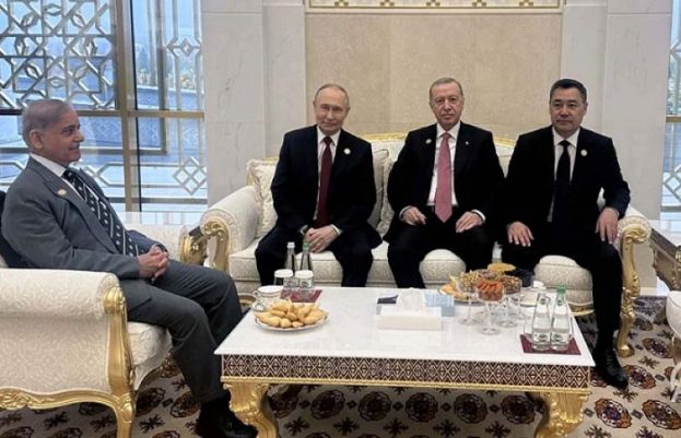 Prime Minister Shehbaz Sharif on Friday exchanged pleasantries with the world leaders in Turkmen capital Ashgabat attending the international forum in connection with the International Year of Peace and Trust 2025, the International Day of Neutrality, and the anniversary of Turkmenistan’s permanent neutrality. On the sidelines of the event, the prime minister held informal interactions with Russian President Vladimir Putin, Turkish President Recep Tayyip Erdogan, Tajikistan President Emomali Rahmon and Kyrgyz President Sadyr Zhaparov. The prime minister, who delivered an address at the forum earlier in the day, drew significant attention as leaders gathered in a room, engaging in an infromal discussions on issues of mutual interest. A video clip released by the Prime Minister’s Office showed Prime Minister Shehbaz warmly holding hands with Russian President Putin and Kyrgyz President Japarov while engaging in separate conversations with them. Earlier, he also joined the world leaders at the iconic Neutrality Monument here, where they participated in a wreath-laying ceremony before addressing the forum where he reaffirmed Pakistan’s commitment to the peaceful settlement of global disputes, while urging the international community to press the Afghan Taliban to honour their international obligations and curb terrorist groups operating from Afghan soil.